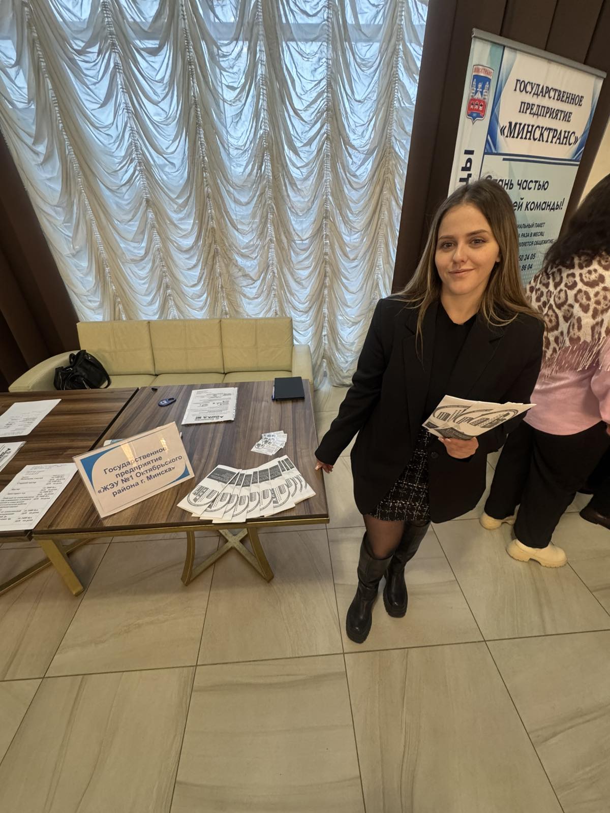 Государственное предприятие «ЖЭУ №1 Октябрьского района г. Минска» приняло участие в Городской ярмарке вакансий, которая прошла 20 ноября 2025 года в культурно-спортивном центре Минского отделения Белорусской железной дороги.