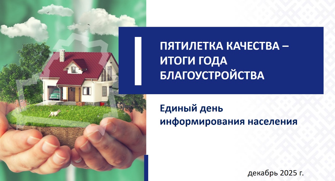 ПЯТИЛЕТКА КАЧЕСТВА – ИТОГИ ГОДА БЛАГОУСТРОЙСТВА 11 декабря 2025 г. в ЖЭУ №1 Октябрьского района Минска прошел «Единый день информирования». Спикер: Геньдик Светлана Валерьевна. Пятилетка качества 2025–2029 гг. — стратегия развития Беларуси в условиях конкуренции. Президент А.Г. Лукашенко: «Качество — конечный результат и путь, наш ресурс наряду с трудолюбием, интеллектом и дисциплиной». Приоритеты Года благоустройства Указ №1 от 3 января объявил 2025-й Годом благоустройства. Цели: удобная, безопасная, эстетичная среда для жизни. Охват — все сферы: от городов до агрогородков. Толока и субботники 12 апреля и 25 октября прошли республиканские субботники. 1,2 млн граждан очистили дворы, улицы, территории. Традиция воспитывает молодежь ответственностью за родную землю. Инфраструктура и порядок МинЖКХ: ремонт 11 млн кв. м дорог, 290 тыс. кв. м тротуаров, 313 парковок, 8 тыс. малых форм. Ремонт 20 тыс. объектов. Муралы в Минске, Бресте, Гомеле и др. Освещение: 4849 опор, 64 550 LED-светильников (экономия энергии). Водоснабжение: Минск на подземные источники. Снос 4516 ветхих домов, 989 га в оборот. Мелиорация и агросектор 2,8 млн га мелиорированных земель (37% угодий). За 10 мес.: 85,3 тыс. га работ (38,9 тыс. — системы, 46,4 тыс. — культуртехника). Очистка каналов, ремонт ферм, дворов. Отходы и экология 100% охват ТКО, 4 тыс. площадок, 26 тыс. контейнеров. 85 сортировочных объектов (1,5 млн т/год, 40% от 4,3 млн т). >85% населения — раздельный сбор. Выявлено 13 тыс. свалок, 22 тыс. постановлений. Леса и озеленение 40% территории — леса (+1 млн га за независимость). Акции «Дай лесу новае жыццё!»: 113 тыс. участников, 45 млн саженцев, 7 тыс. га. «Лес! Дабро! Парадак!»: аллеи, мемориалы. Высажено: 304 тыс. деревьев (Брестская обл. — 95 тыс., Минская — 50 тыс.), 377 тыс. кустарников (Минск — 177 тыс.), рекорд 32 млн цветов (Минск — 10,6 млн). Дороги и регионы Финансирование: 2,3 млрд руб. (2025 vs 930 млн в 2022). Планы: 24 тыс. пог. м мостов (500 объектов, +30%). Примеры: Минская обл. — Парк в Копыле, трасса в Борисове; Брестская — скейт-площадки в Белоозерске; Гомельская — стадион в Копаткевичах. Гражданские инициативы Акция «Чистый двор»: участие жителей, софинансирование площадок. 90 инициатив по озеленению. Благоустройство мемориалов к 80-летию Победы: «Сад памяти» (Гомельская обл.), знаки в Зельве, Мариново. Заключение Президент: «То, что не сделали вы, никто не сделает. Каждый за свой клочок земли отвечает».