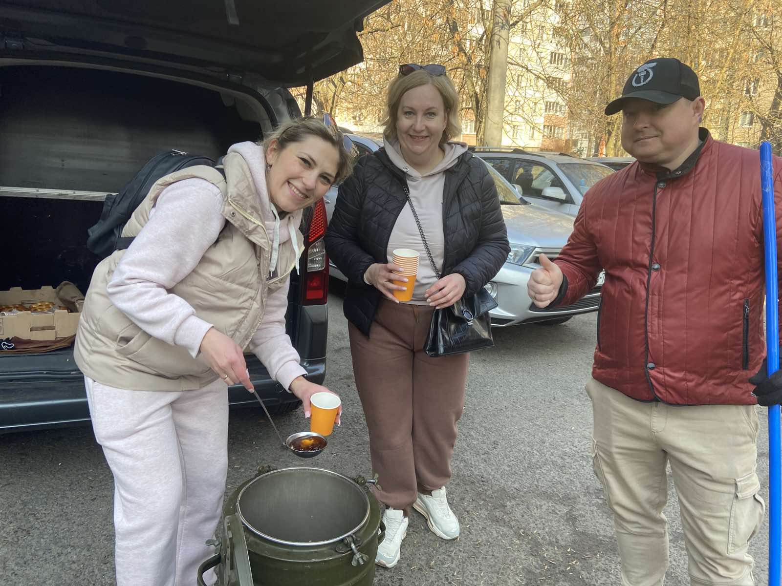 Для участников субботника были организованны угощения. Горячий чай и продукция комбината школьного питания Октябрьского района г.Минска стали приятным бонусом и выражением благодарности за внесенный вклад в преображение района.