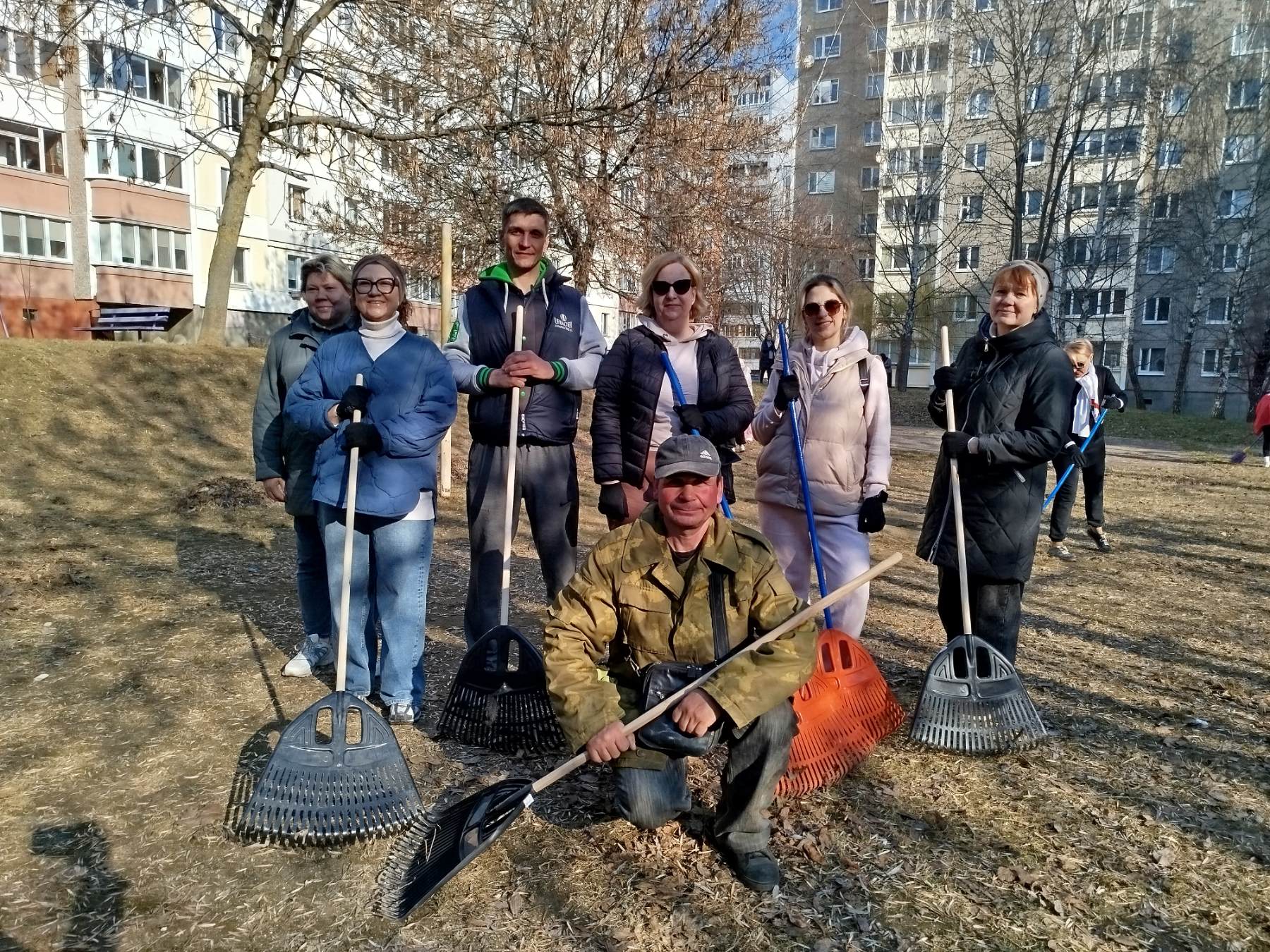 Государственное предприятие «ЖЭУ № 1 Октябрьского г.Минска» с участием общественности провело субботник. Помимо рабочих и руководства нашего предприятия на уборку придомовой территории пришли активисты районного объединения «Белая Русь», представители КОТОС № 50, представители БРСМ.