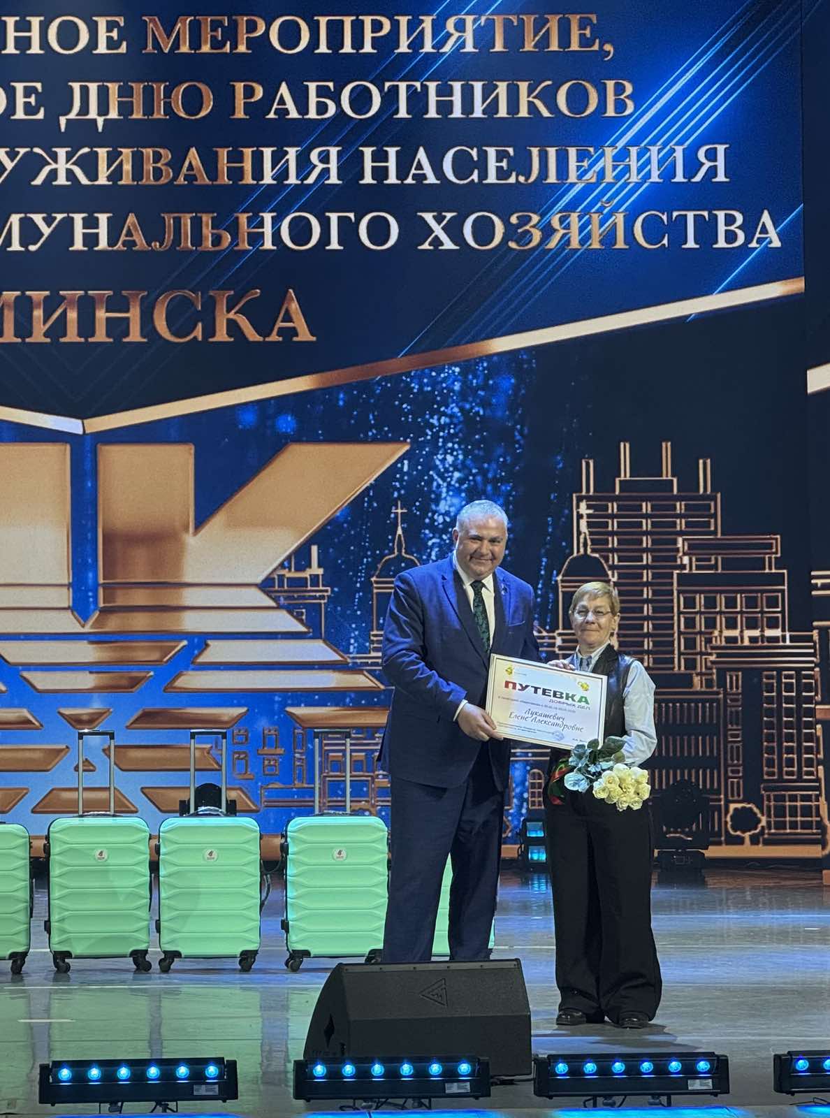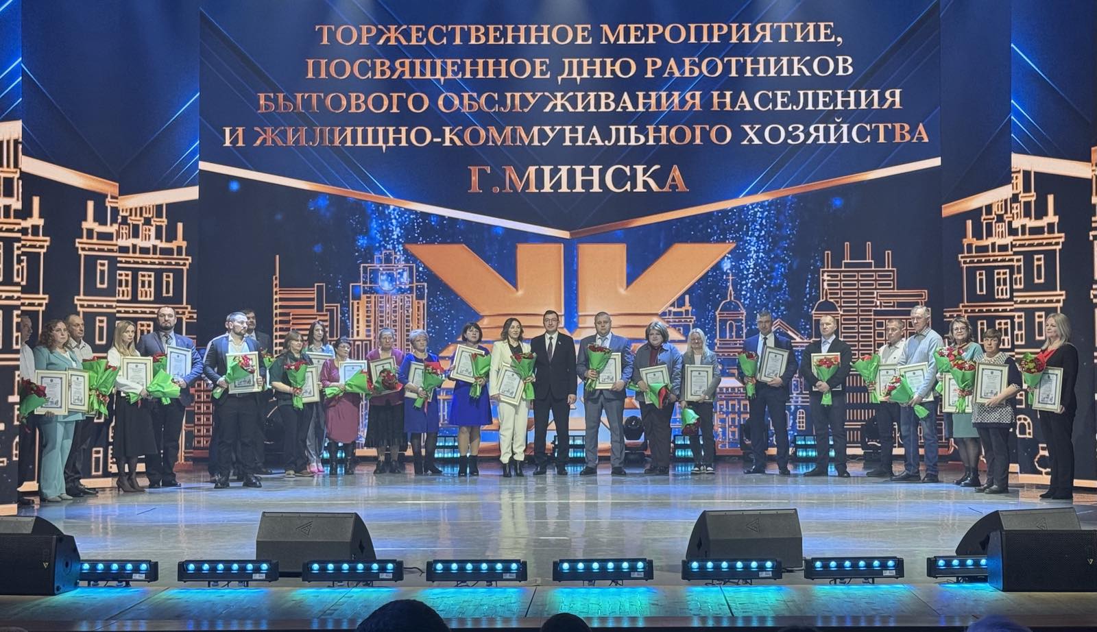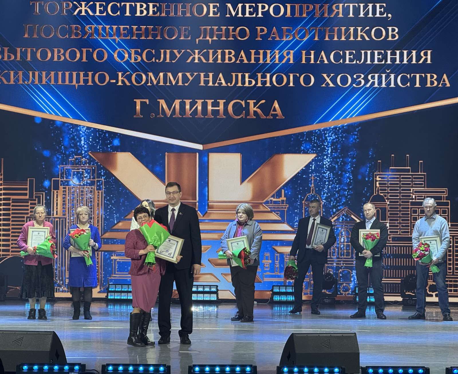 В преддверии Дня работников бытового обслуживания населения и жилищно-коммунального хозяйства в концертном зале «Минскконцерт» состоялось торжественное мероприятие, на котором были отмечены лучшие специалисты отрасли. В числе награжденных — наши сотрудники: Силич Елена и Лукашевич Елена, занимающиеся комплексной уборкой и содержанием домовладений.